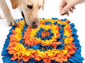 Snuffle Mats help stimulate the dog's brain by forcing them to use their noses to find hidden food or treats!